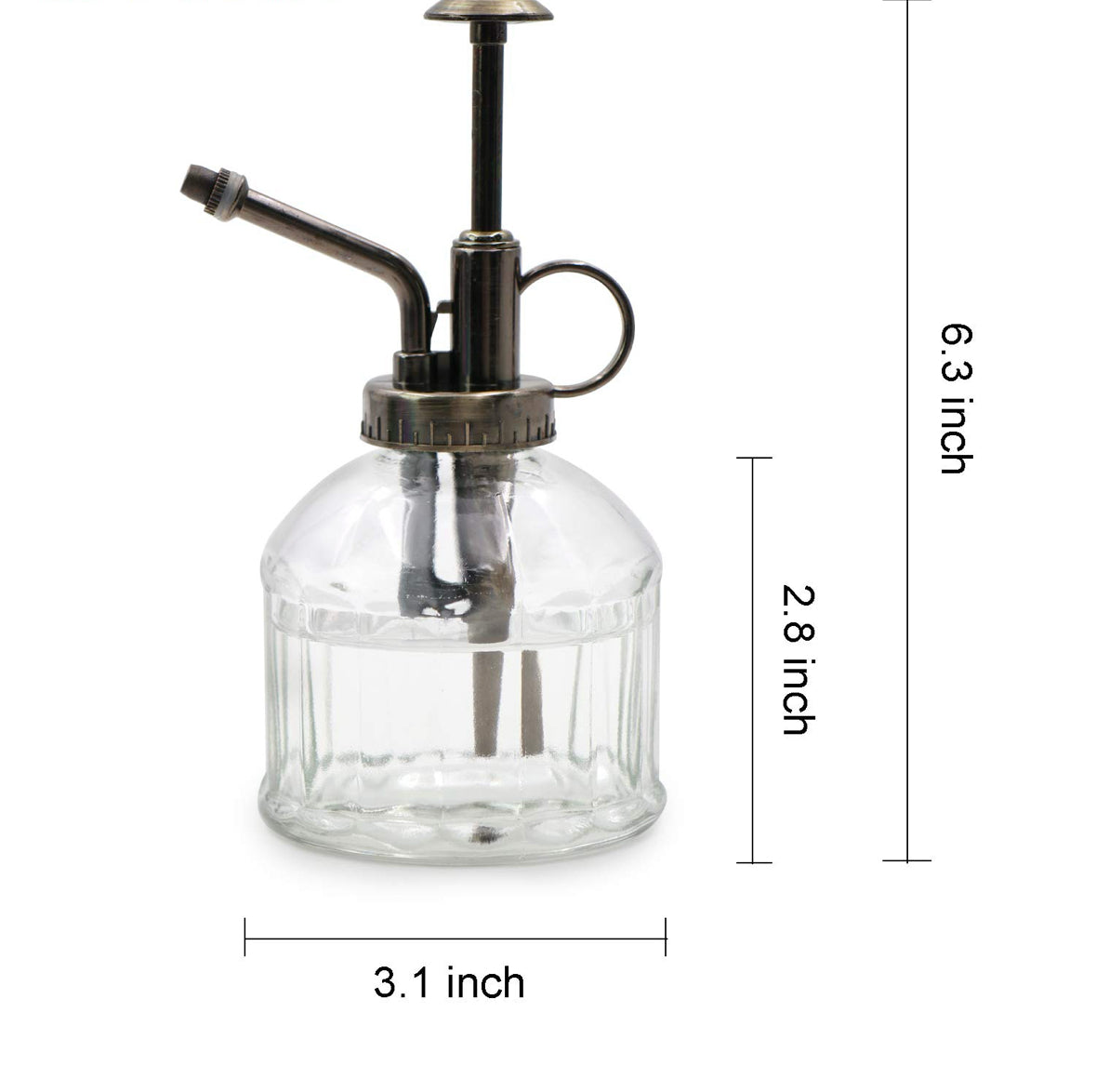 Keep your plants healthy and hydrated with this transparent glass plant mister. Featuring a durable glass body and a vintage bronze style pump, it delivers a fine, even mist that helps maintain ideal humidity for houseplants, succulents, orchids, and tropical plants. Its compact size makes it easy to hold and perfect for both indoor and outdoor use, while the timeless design adds a decorative touch to any plant care routine. This versatile spray bottle can also be used for light cleaning or refreshing your space, combining beauty and function in one essential tool.