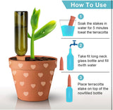Keep your plants perfectly hydrated with these eco friendly terracotta watering spikes. Simply attach any long neck bottle, and the porous clay slowly releases water into the soil, giving your plants consistent moisture for up to 7 to 10 days. Perfect for both indoor and outdoor use, these reusable spikes are ideal for vacations, busy schedules, or anyone who wants healthier plants with less effort. A simple and sustainable way to help your greenery thrive while conserving water.