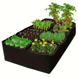 Grow multiple plants with ease using this 128-gallon rectangular grow bag. Designed with 8 separate grids, it keeps vegetables, potatoes, and flowers organized while preventing root interference. Made from durable, breathable fabric, it promotes healthy root growth, prevents circling, and allows excess water to drain. The space-saving rectangular design fits neatly in gardens, patios, or along walls, making it ideal for maximizing yields in small areas.