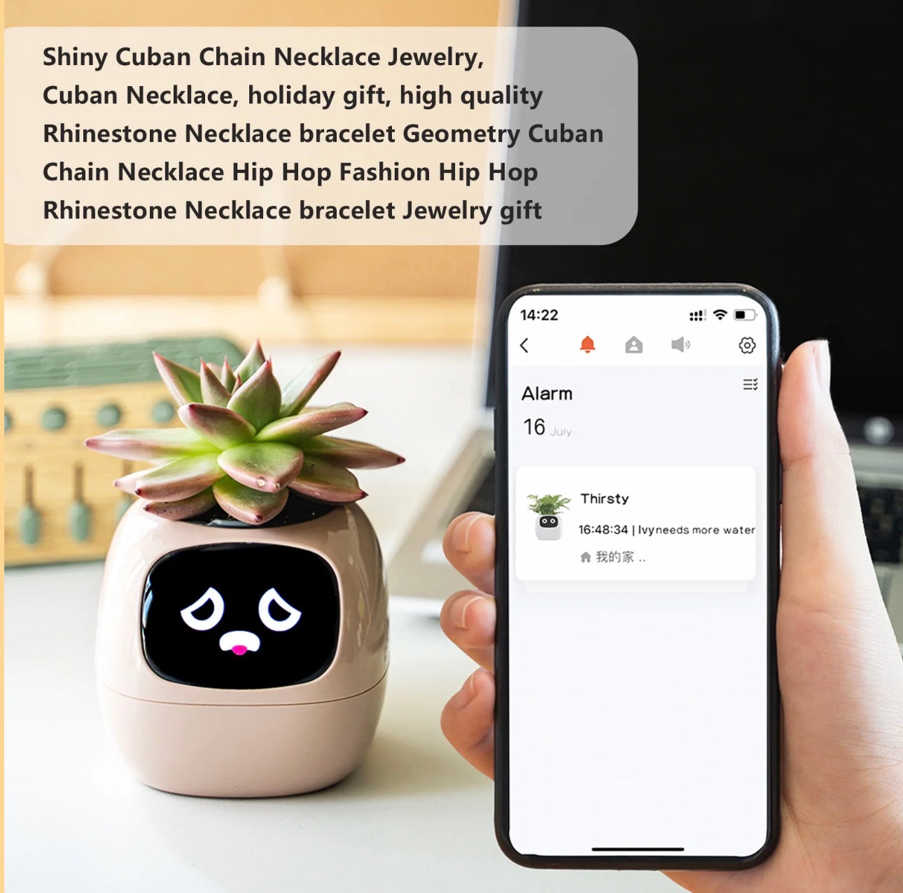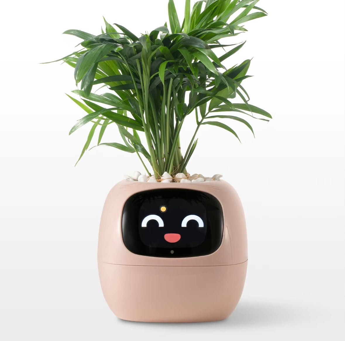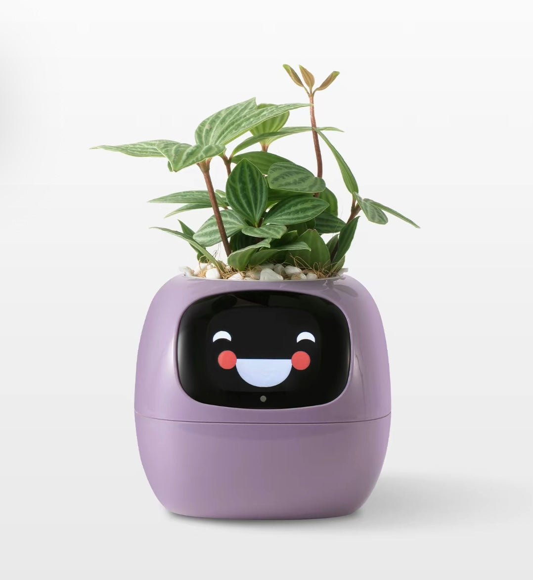 A smart planter that waters itself, reacts to touch, and displays fun animations. Built-in sensors track light, moisture, and temperature to keep your plant thriving. Perfect for your desk or as a unique gift.
