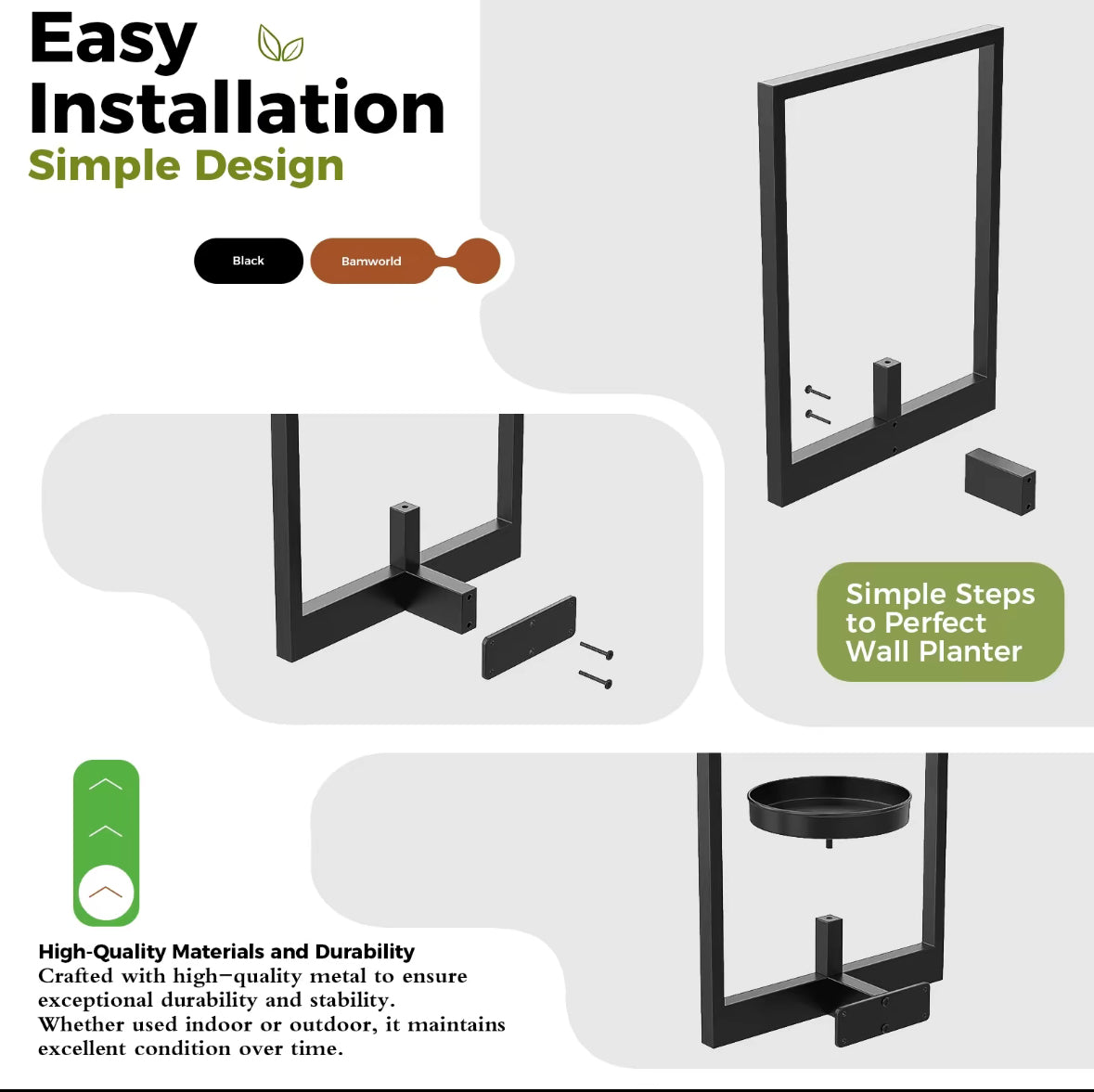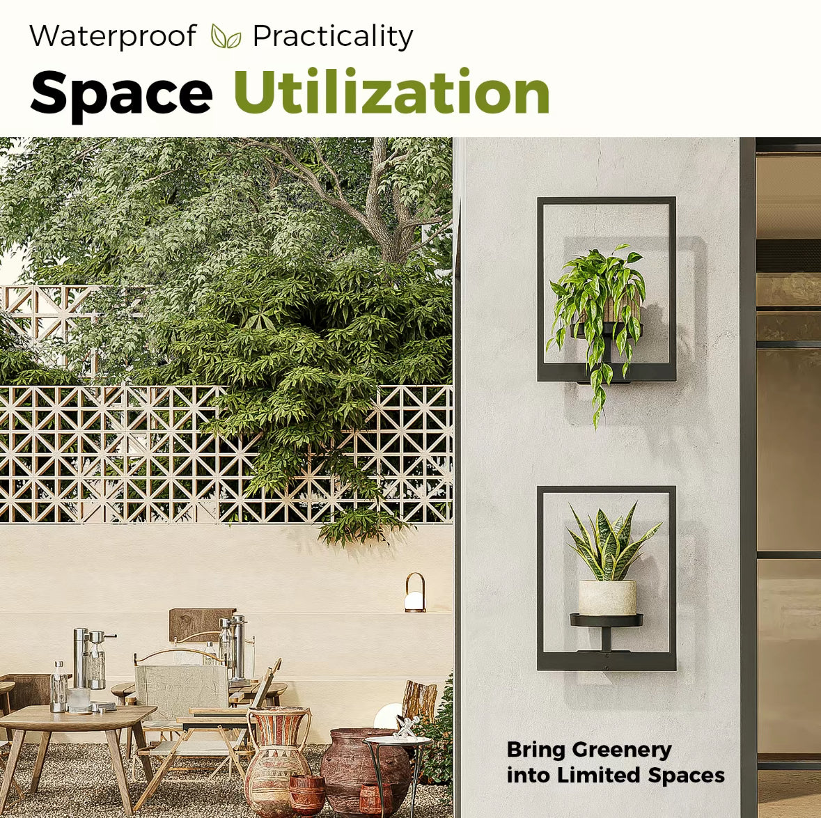 Transform your walls into living art with this two piece photo frame plant holder set. Made from durable black metal, these modern wall planters showcase your favorite 3 to 5.5 inch pots like artwork, adding a touch of style and greenery to any space. Each holder supports up to 20 pounds and installs easily, making them ideal for windows, living rooms, patios, balconies, or garden walls. Whether used for everyday home décor or seasonal accents, these planters bring elegance, versatility, and a natural charm to any setting.