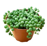 Bring a touch of natural elegance to your home with the stunning string of pearls plant. This trailing succulent features long cascading vines covered in round bead like leaves that create a soft, flowing look perfect for hanging planters, shelves, or decorative pots. Low maintenance and drought tolerant, it thrives in bright indirect light and only needs occasional watering. Ideal for both new and experienced plant owners, the string of pearls adds effortless greenery, texture, and timeless beauty to any indoor or outdoor space.